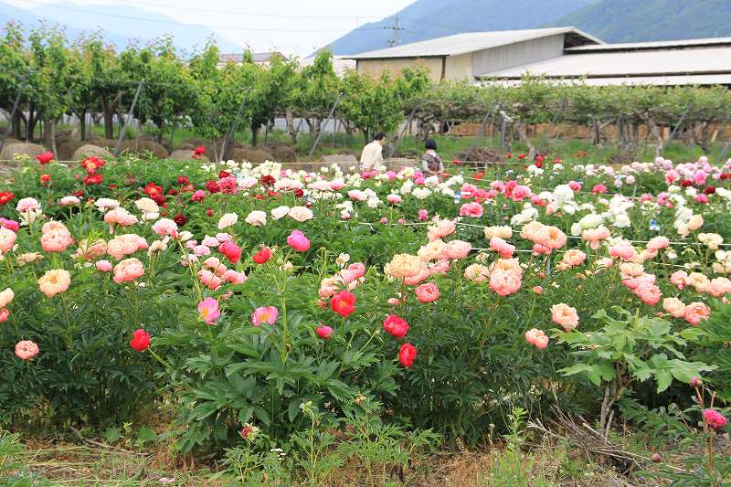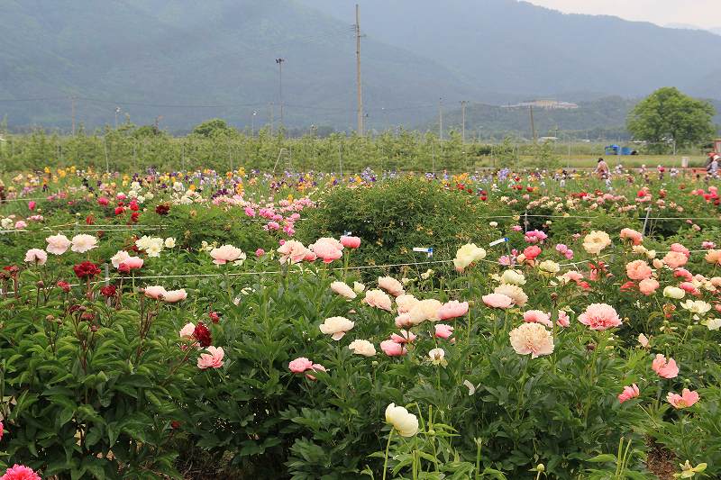 敷地内にジャーマンアイリス300種2万株・芍薬120種1000株が植えられている。